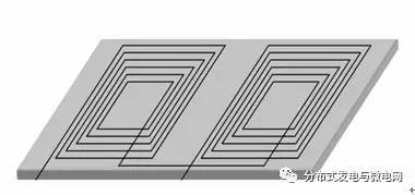 雖然DDQ結構具有良好的抗偏移效果,但是DDQ結構的用銅量較大。因此,在DD線圈的基礎上,奧克蘭大學又提出了BP線圈結構[8 9]。BP線圈是由兩個環形線圈交錯反向串聯而成,兩個環形線圈之間的互感為0,互不影響。兩個環形線圈的輸出通過整流后并聯。線圈結構如圖6所示。BP線圈相比DDQ線圈的耦合要略差,輸出的功率也較低。但是能夠節省25.17%的用銅量。